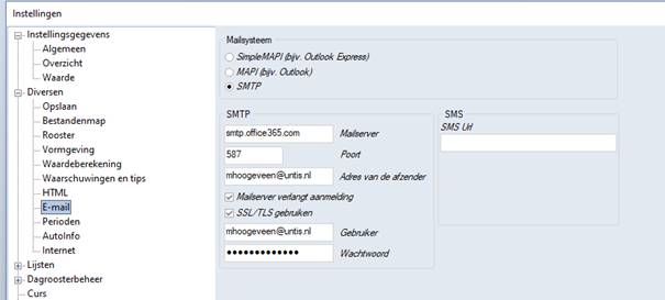Maakt u gebruik van onze Untis Online service, dan kan de SMTP-server van Micros worden gebruikt.