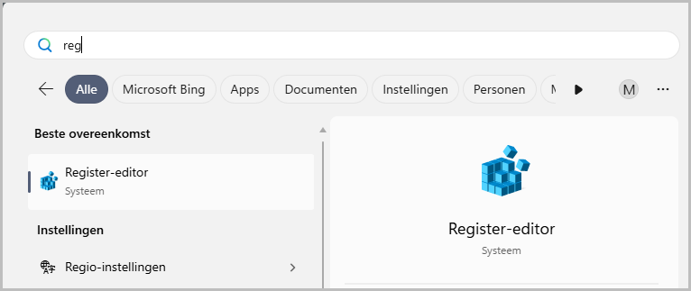 - Activeer de Zoek-knop links onderin en type 'Reg'