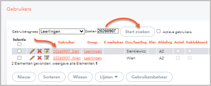 - Valt de afloopdatum in het vorige lesjaar, dan wordt de begindatum van het lesjaar toegevoegd aan de gebruikersnaam.